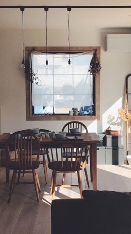 今回のポイントの一つにリビングの窓まわりに飾りを回してアクセントにしました。