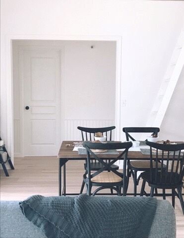 室内には腰壁の板張りをところどころに施し、外国のお家をイメージしながら創りあげました。白い室内は家具や小物を引き立たせます。