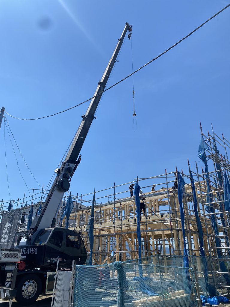 今日も38°C越えの猛暑。建て方工事の現場は本当に過酷です。