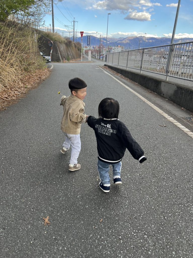 同じ駐車場にとめたというので仲良く手をつないで歩いていました😊😊