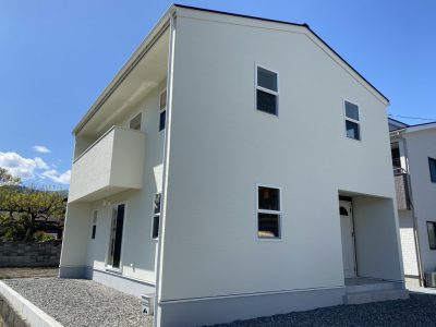 先日、甲斐市のK様邸のお引き渡しでした。 白をメインにした色合いのIEISM 三角の屋根がお家らしいフォルムになってます。