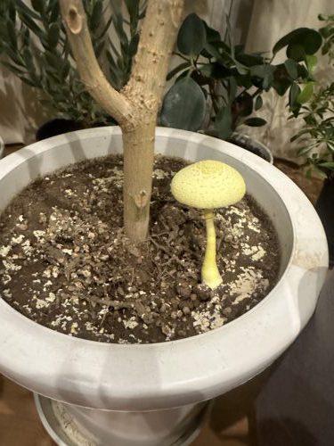 最近バタバタしていたら 大切な観葉植物に なんと巨大なキノコが 笑