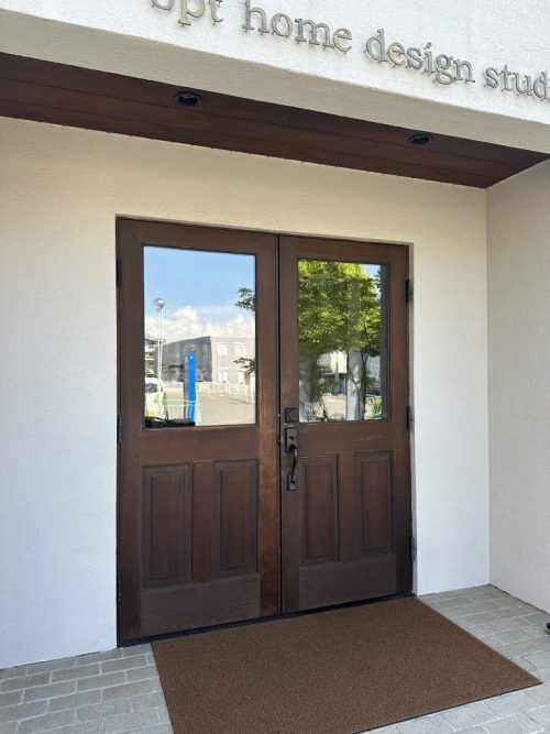 お客様を1番最初にお迎えする オプトショールームの木製ドア