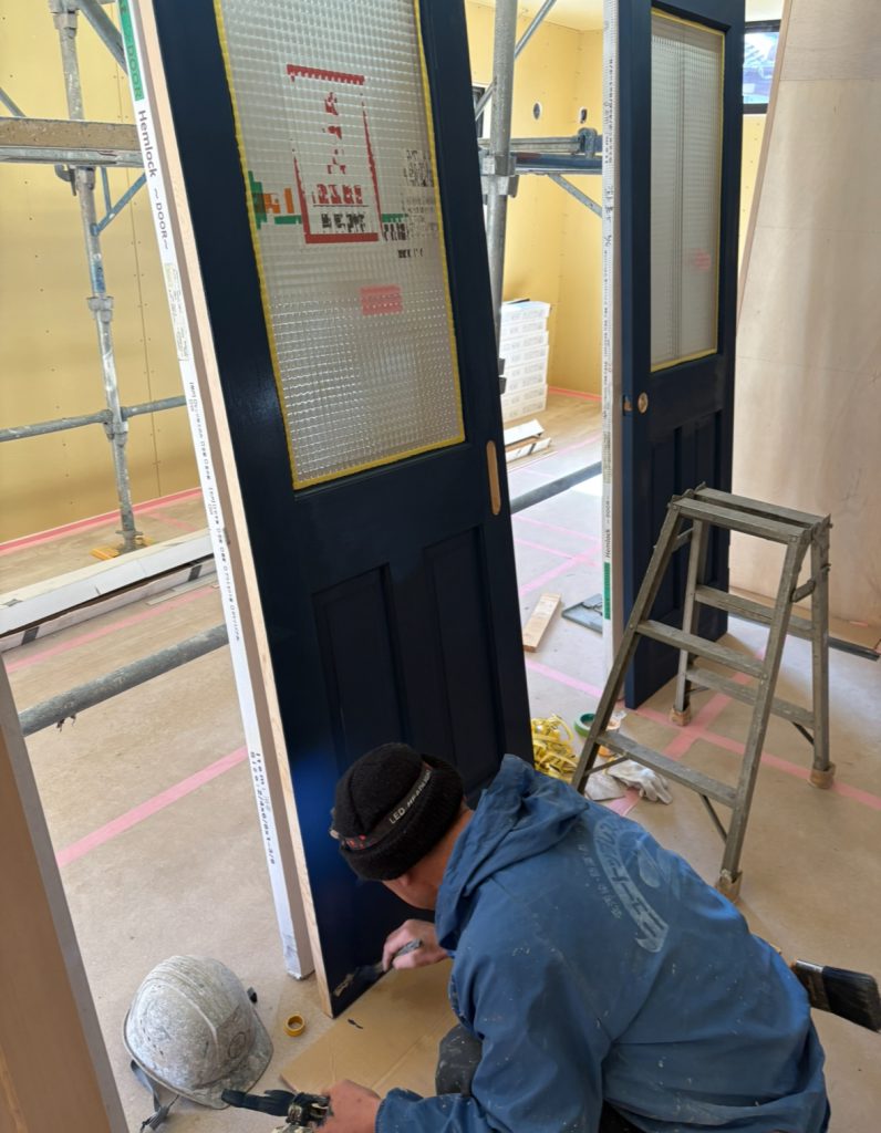 木製のドアの塗装中でした