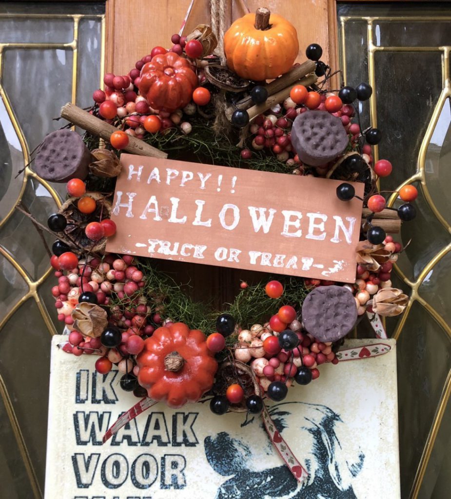 玄関先には、今年手に入れたハロウィンリース。