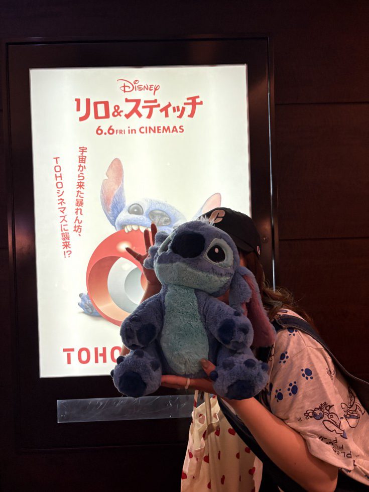 おうちにたくさんスティッチのぬいぐるみがあるのですが、今回は1匹をセレクトして一緒に映画館へ🚙