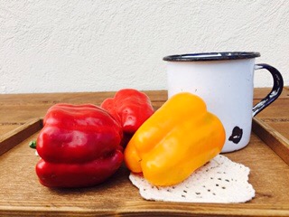 そして、龍地のテント下で待機していたら…オーナーのO様が、家庭菜園で採れたパプリカと明野のラズベリー農園で購入したラズベリー酢の水割りを差し入れ