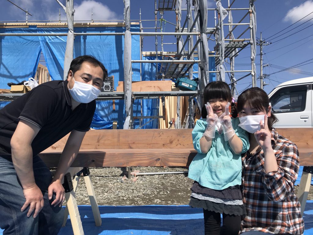 マイホームの完成後、リビングの梁を下から眺めながら、この日の事を想い出して貰えたら嬉しいです。