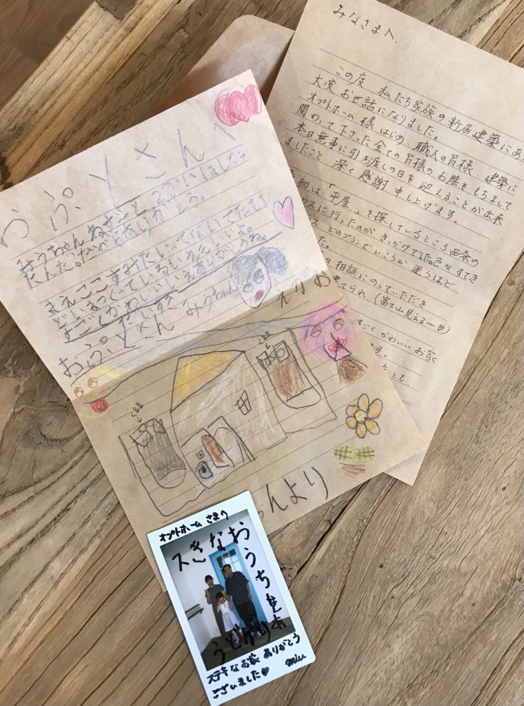 長女Mちゃんが、「スきなおうちをありがとう」って写真に書いてくれたり、イラスト付きの手紙を頂きました❤︎ご夫妻からもお手紙やお菓子を頂き、感謝でいっぱいです。こちらこそ、今まで本当にありがとうございました。