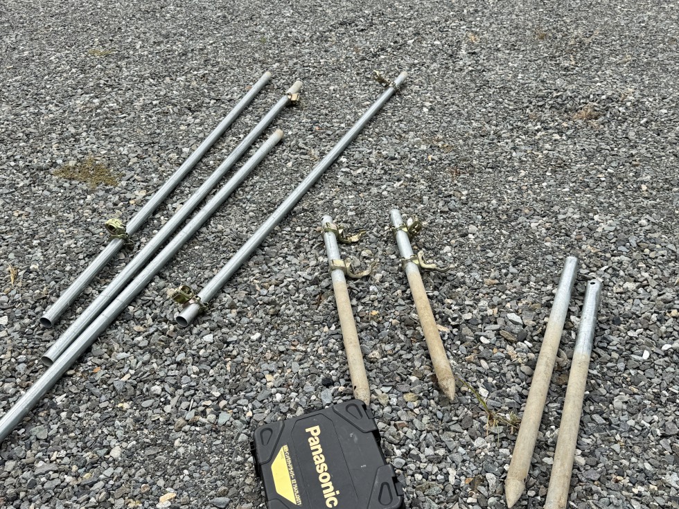 パイプを地面に打ち付けるのですが、地面が固いと1回打つ毎に1cmも入っていかず、反動で脳が揺れます笑
