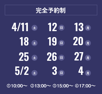 - 当日のご予約は、ご希望の時間帯に添えない場合がございます。
