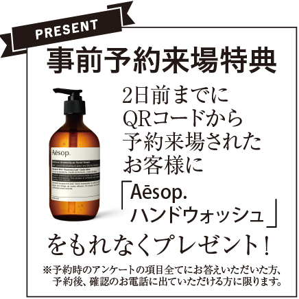 ・予約時のアンケートの項目全てにお答えいただいた方 ・予約後、確認のお電話に出ていただける方