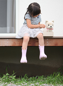 リビングで、ウッドデッキで彩葉(いろは)ちゃん 3歳の一喜一憂に目を細めるG様一家。