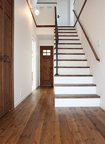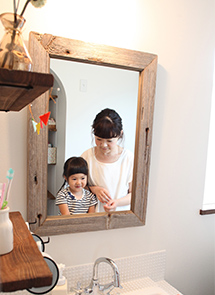 ご主人は、TV裏にアクセントが欲しいと、その部分の壁だけ白いペンキを塗った木板にして、ちょっぴり変化を楽しんでいます。そのほか、玄関の吹き抜けや部屋と同化された多くの収納、アイアンの手摺りとベランダの柵、少し広めに作られたバスルームなど、ご主人と奥様二人の思いがいっぱい詰まった幸せいっぱいのおうち。「この家に帰ってくると“ほっ”とする。ずっとそのまま“ほっ”とする場所であってほしい」。「気が許せる家族と、気が休まるこの家。いつまでもそんな場所であってほしい」。夫婦揃って思いも同じ…幸せの形は「Mamanの家」かもしれません。