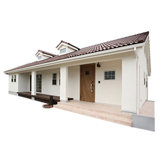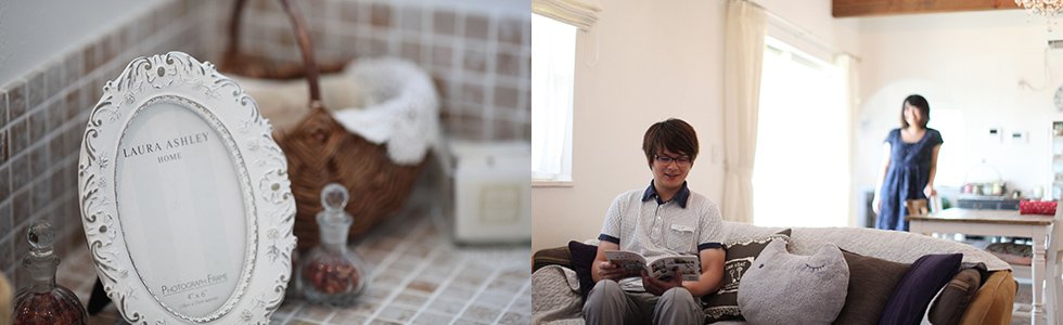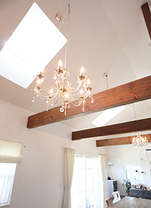 そして、フレンチスタイルをテーマにしたおうち作りがはじまりました。奥様の想い・こだわりと、2人の意見を出しあい、そのイメージをご主人が描き、形にしていく…ちょっとしたところに、ちょっとしたこだわりを織り込んでできたおうちは、古民家のような平屋を洋風で魅せ、吹き抜けを持った開放感ある空間になりました。 モデルハウスのインテリアを見た瞬間“オプトさんならきっと叶えてくれる”と感じたほど感性が合ったそう。 型にはまらない考えと、ムリと言わず努力する姿勢、そしてゆる~い感じの親近感も…。家に遊びに行く感覚、お茶しに行く感じの打合せは毎回楽しみにしていたと言うお二人。 そんなおうちの中は…吹き抜けとドーマ、キッチン、トイレ、寝室まで光がたっぷり降り注ぎ、さらに、なにかしらの+αを持つようになっています。「その頃住んでいた団地の“イヤ”なところを逆手にとった真逆の発想をしたんです」と奥様。