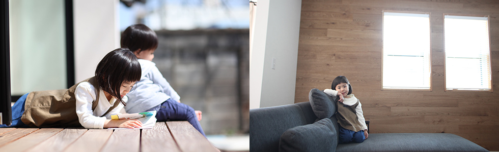 「無垢の床材」T邸の奥様がネットで住宅会社探しをはじめた最初の検索条件。「郡内の冬はやはり寒いです。経年劣化した実家は寒すぎて。なにしろあたたかい家にこだわりました」。そして、ヒットしたうちの1社がオプトホームだったと言います。他社にも話を聞きに行ったり、いろいろなモデルルームを見学した結果、「ひと目惚れに近いオプトホームさんが、あたたかさ重視の我が家にとって、断熱材の仕様もデザイン性も満足」する内容だったそう。