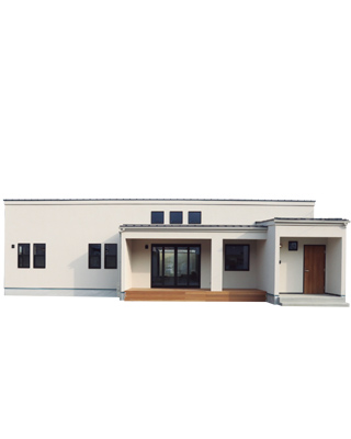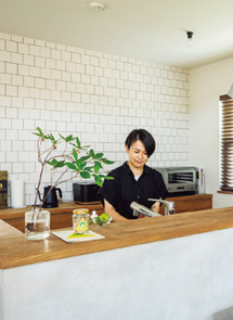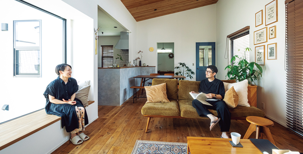 無機質なコンクリートのグレーと、それを中和する板張りやタイル張りなどの天然素材が2人の「らしさ」を表現しているようなE様邸。お2人との出会いは、モデルハウスに来場してくれたあの日から始まります。シンプルながらも個性が引き立つような家をイメージしていたお2人の目的は「フラットハウス」。 アーティスティックな素敵なお2人だからこそ、妥協を許さず真剣に家づくりと向き合い、居心地の良い空間を模索していたように思います。私は、そんなお2人の気持ちに添えるようなお手伝いをするだけ。 こうして完成したFLATHOUSEは、アクセントカラーのブルーのドアに、コンクリート調のキッチンカウンター。リビングダイニングの向こうに見える書斎。2人分の洗面台にタイル張りを施した洗面所etc。そんなバランスの加減が丁度よく、感性豊かなお2人の世界が繰り広げられています。お引越し前から何度も足を運んで選んだという、こだわりのトラックファニチャーの家具がとてもかっこよく、周りと調和させながら引き立つ素敵なお家です。暮らしぶりはやはりアーティスティックなお2人らしく、好きな小物の他にも奥様の描いた絵やご主人の作品など、いたるところにらしさで彩られていて、丁寧に考えた暮らしは、お手本になります。