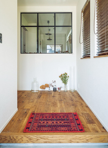 ホールには大きなアイアン造形窓。視線が広がります。