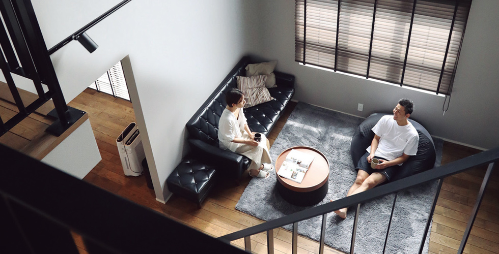 休日は、リビングでお茶を飲んだり読書をしたり。ゴロゴロのんびり過ごすことが最高の贅沢というお2人。これからは、「ちょっぴりIESIMに合うグッズを足していく予定。それでもう充分」だそう。