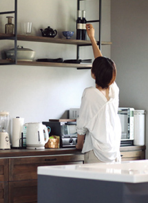 見せる収納でキッチンスペースも素敵に演出。