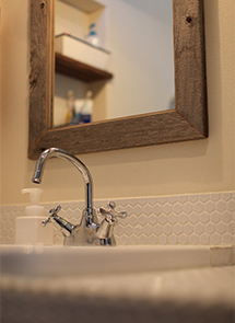 センスが良い奥様のイメージは“昔の小学校”。木の温もりがある古い家具が好き。「築40年のアパートにいた時、住みづらさ、居心地の悪さを感じながらも壁や窓の木枠などレトロな雰囲気が好きだったので、壁を塗ったり、古い家具を集めたり。その雰囲気を壊したくなかったので以前住んでいたアパートと壁の色を同じにしてもらい、家具も新しく買い替えず以前のものを持ち込みました。また、既存の家具では雰囲気が合わないので父に作ってもらったりして、統一感を出しています。」と、センスに磨きがかかるお部屋は、オープンキッチンにせずに仕切られたリビングや、玄関にある洗面台、開けても違和感