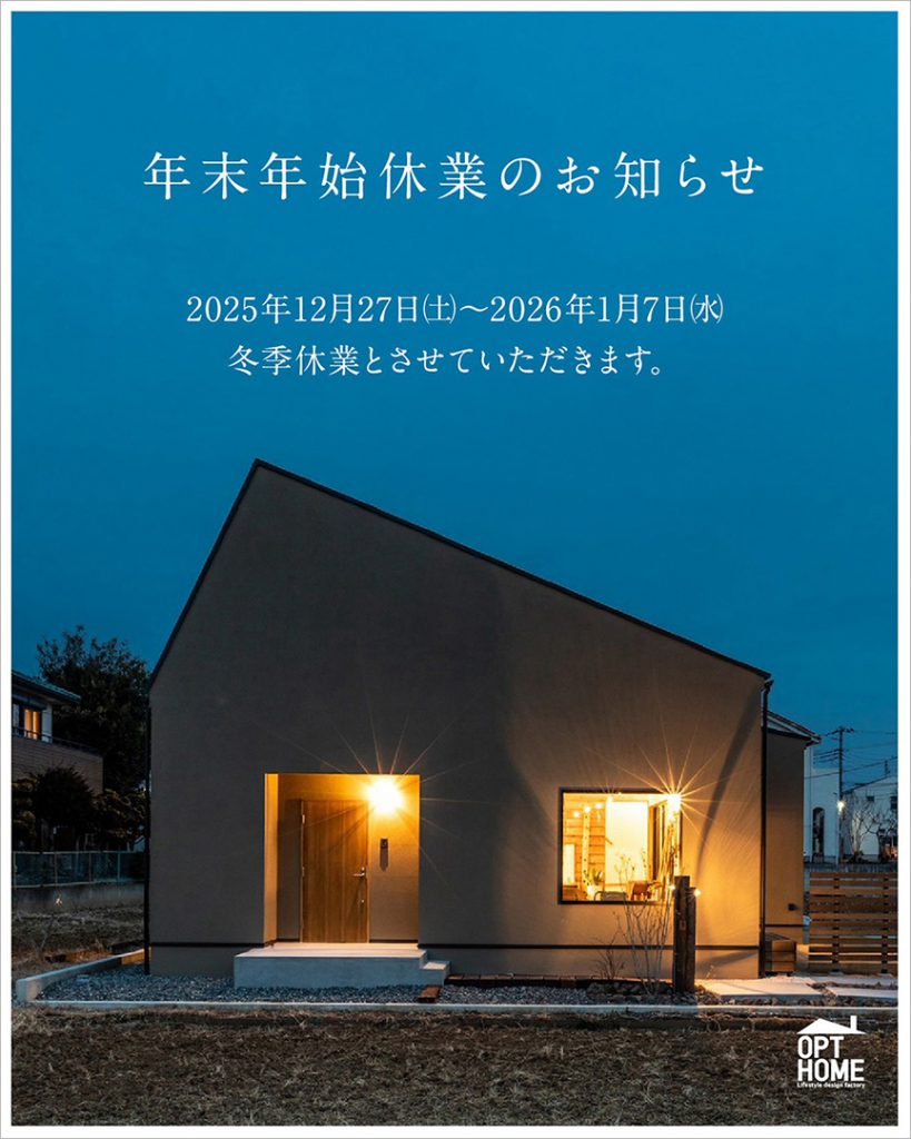 OPTHOMEは 2025年12月27日(土) から 2025年1月7日(水)まで お休みをさせていただきます。 皆様にはご迷惑をお掛けしますが何卒ご容赦願います。