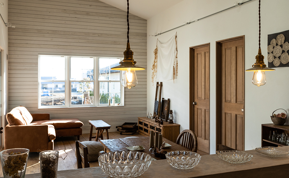 #150 古道具たちの家 長い間大切にしまっておいた大好きなモノ。 マイホームができたらぜったい飾ろうと決めていた古道具たち。 どれもこれも可愛くていとおしい。 これからは毎日眺めながら。 商品名 FLAT HOUSE 間取り 3LDK+ロフト 前へ 一覧へ 次へ STYLE GALLERYギャラリー ALL