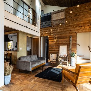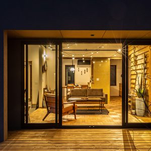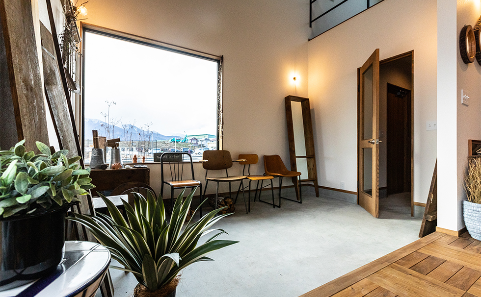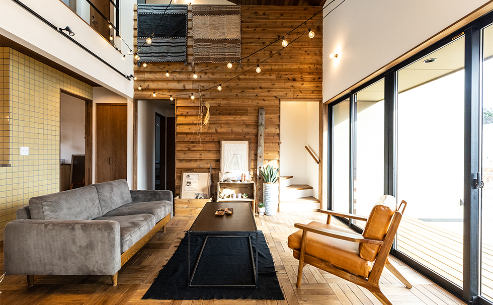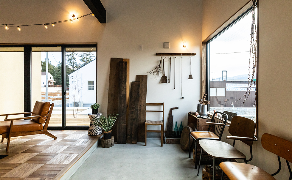 玄関から繋がる広い土間スペースがワクワクのヒントを与えてくれる。