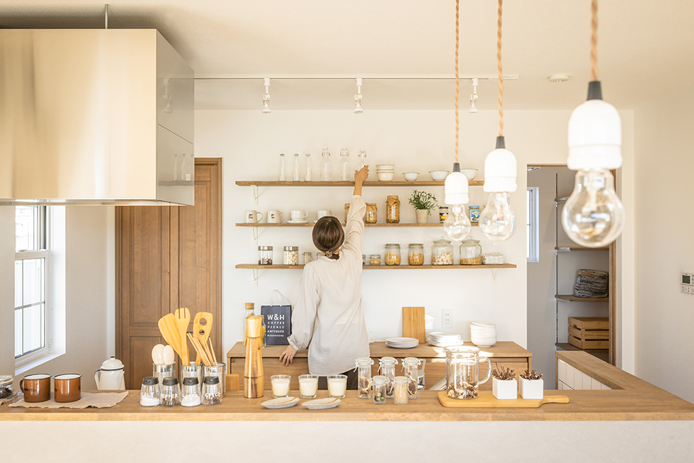 #157 CAFÉ時間の家 家がお気に入りのカフェだったらいい。 キッチンのまわりは大好きな小物やお皿、カトラリーを並べて。 コーヒーの美味しそうな香りが漂う空間にいつも居られる幸せを感じる。 商品名 IEISM 間取り 4LDK 前へ 一覧へ 次へ STYLE GALLERYギャラリー ALL
