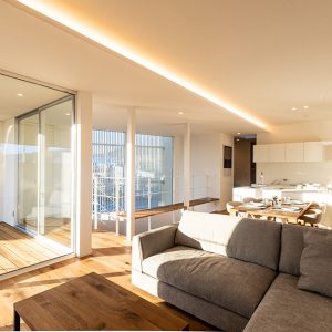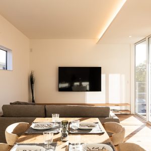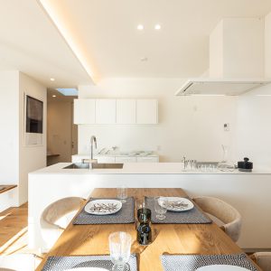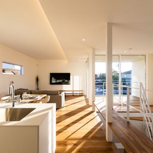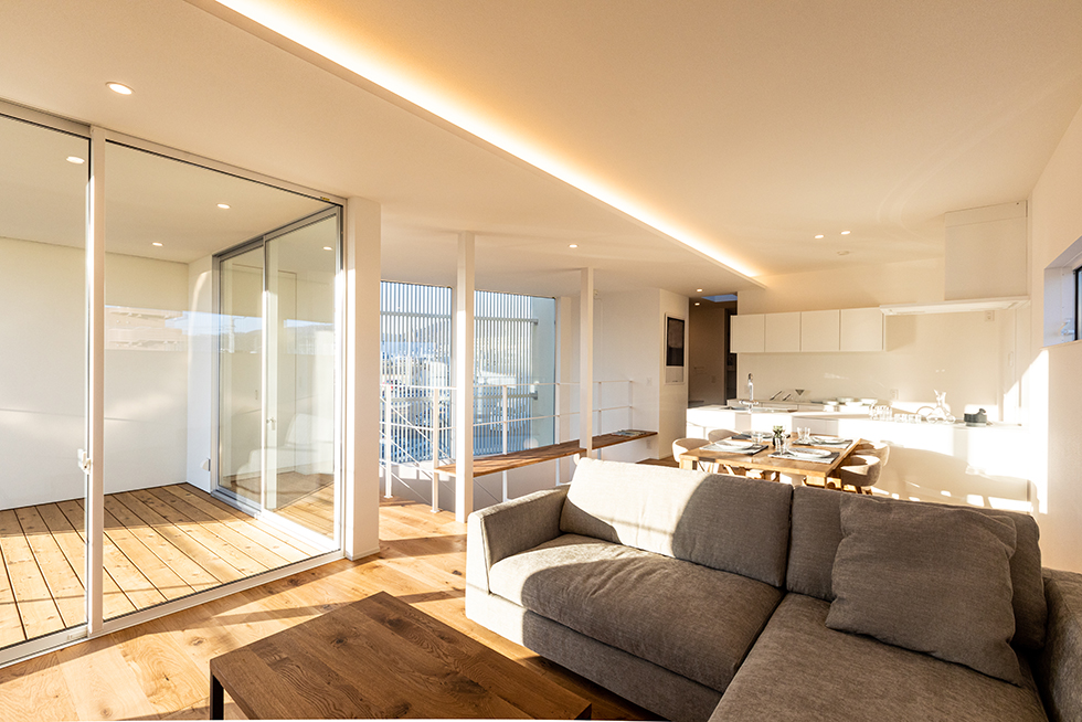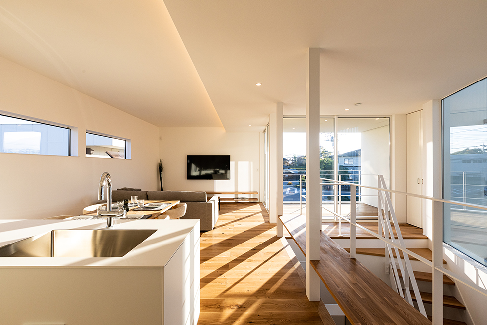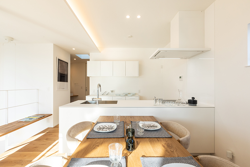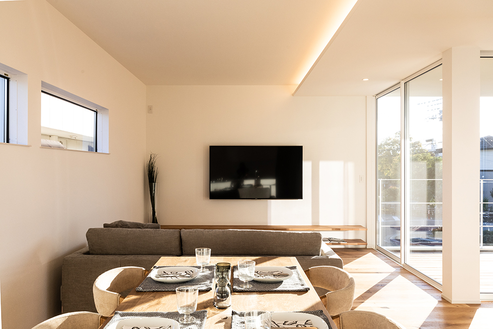 真っ白な空間は、私たちのこだわり。光が集まる広いLDKは朝のスタートから気持ち良さを与えてくれる。