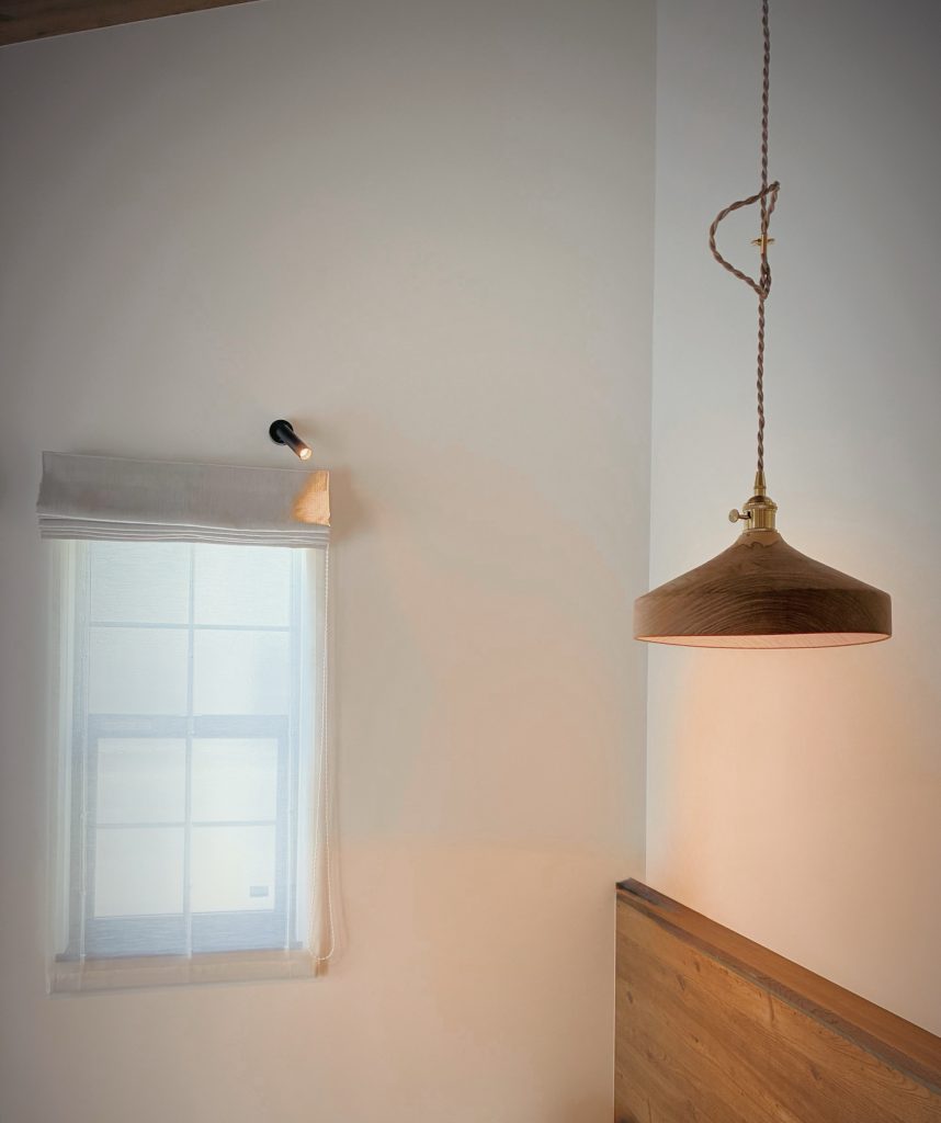 ダイニングにはお施主様さまのお持ち込みいただいた木目がとても美しいペンダントライト。
