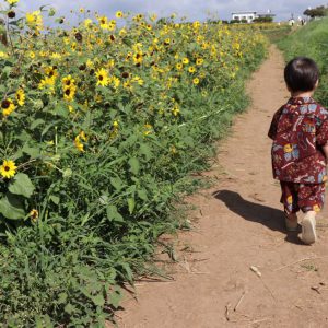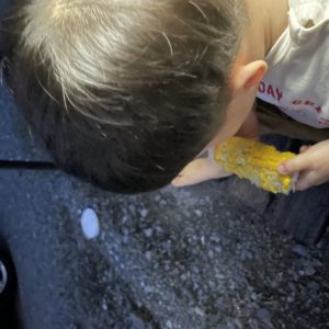 実家からもらってきたトウモロコシを息子と外で食べ…