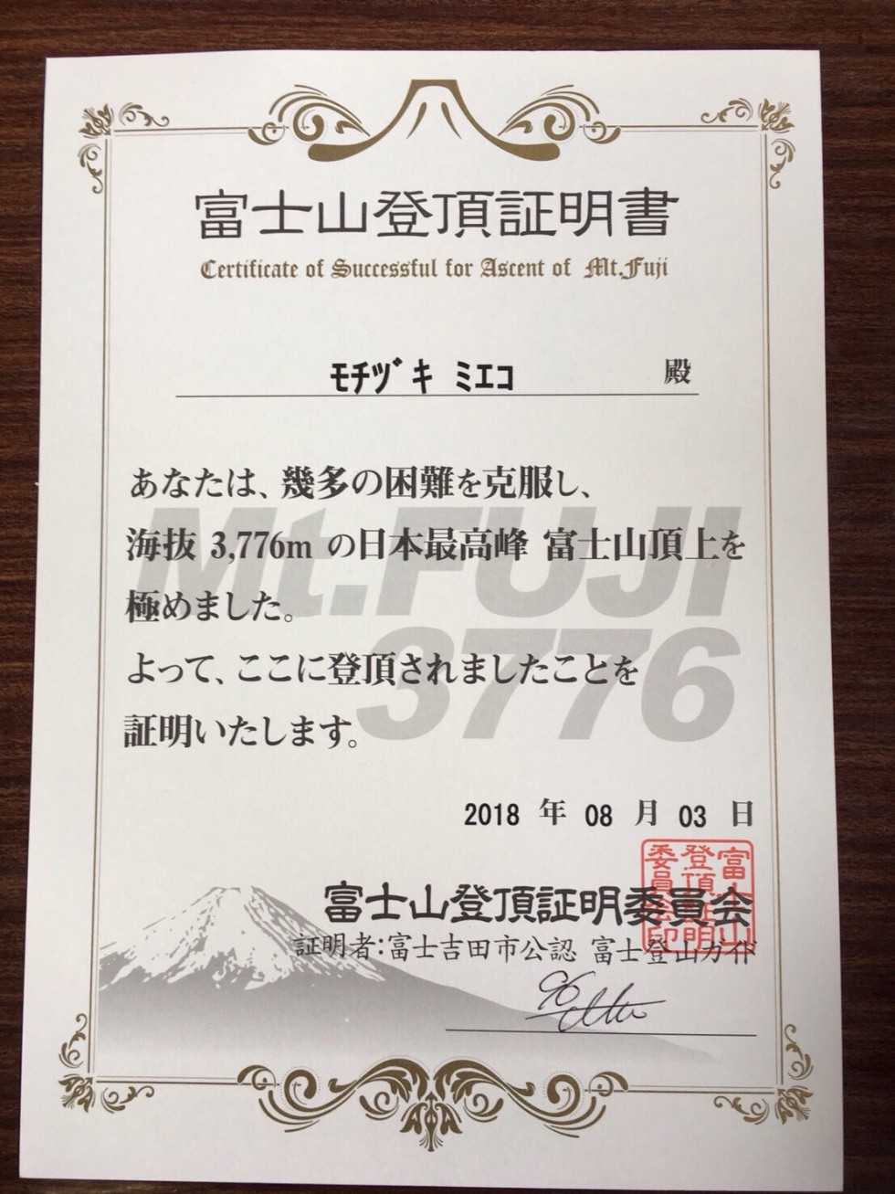 連日の猛暑でクーラー風邪をひき、体調はイマイチでしたが…2日間掛けてゆっくり一歩一歩ひたすら歩き続け、御来光前の午前3時には、登頂成功!山頂は、真冬並みの寒さでしたが、心は、もうルンルン気分の春!