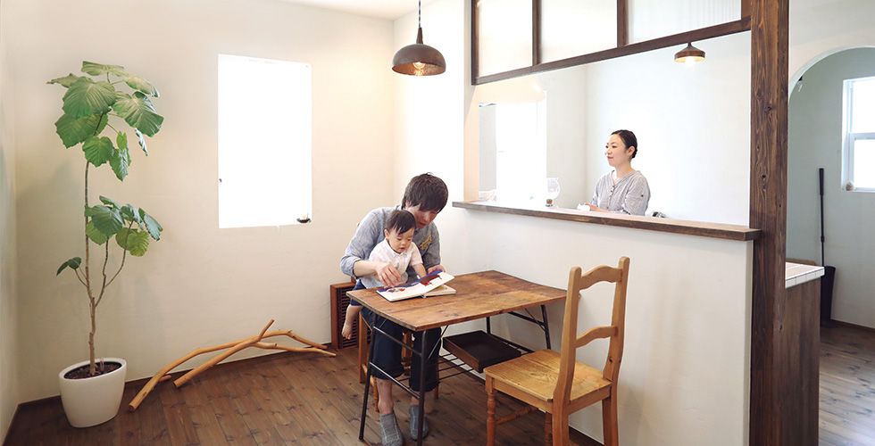 どこを切り取っても、M邸のこだわりが詰め込まれた空間になくてはならないもの、それは、ぬくもりが感じられる古道具の数々。大切に使われ、長い時間をかけて現れた質感や表情を上手に調和させて、M様らしい生活に落とし込んでいます。最初からオプトホームで家を建てると決めてはいたものの、奥様は自分のこだわりを理解してくれるのか?頭の中の空想の世界をどう伝えられるか?どう表現してくれるのか?プランが出来上がっていただけに不安もあったはず。しかし「対応してくれたスタッフの方が、とても好印象で、この会社にお任せしよう」と感じたと言います。 こうして完成された宝箱のようなおうちでの生活は、早いもので3年を迎えました。その3年の間には敢太くんも生まれ、ご夫婦の大切なものがまたひとつ増えました。この先さらに、大好きなものに囲まれ、古道具と一緒にM家も長い長い年月をかけて幸せの物語をつくっていくことでしょう。