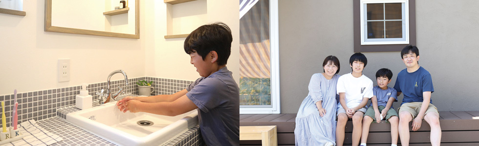 晴れた日には、家族全員がお気に入りのウッドデッキに座り込み、日向ぼっこするのが何よりの幸せというH様ご家族。