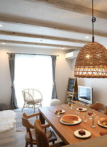 料理が得意な奥様お気に入りのキッチンは、調理器具がたくさん置ける広々とした空間となっていて、「作業が楽で使い勝手も最高です」と、ママンの特権である梁のエイジングに目を見張りながら「自分たちだけのひとつしかないオリジナルの思い出です」と微笑みます。